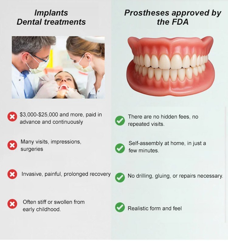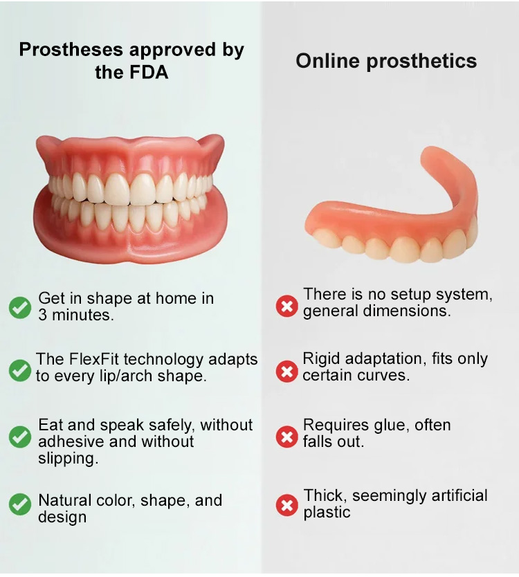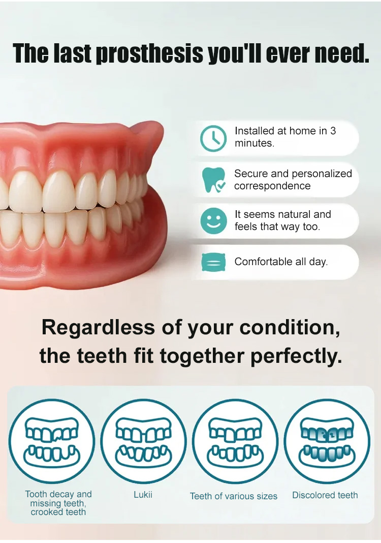 🔥【FDA & BDA Dually Certified Realistic Denture Kit】🦷 Instantly covers gaps, crooked teeth, missing teeth, stained or yellowed teeth—reveal a confident smile!