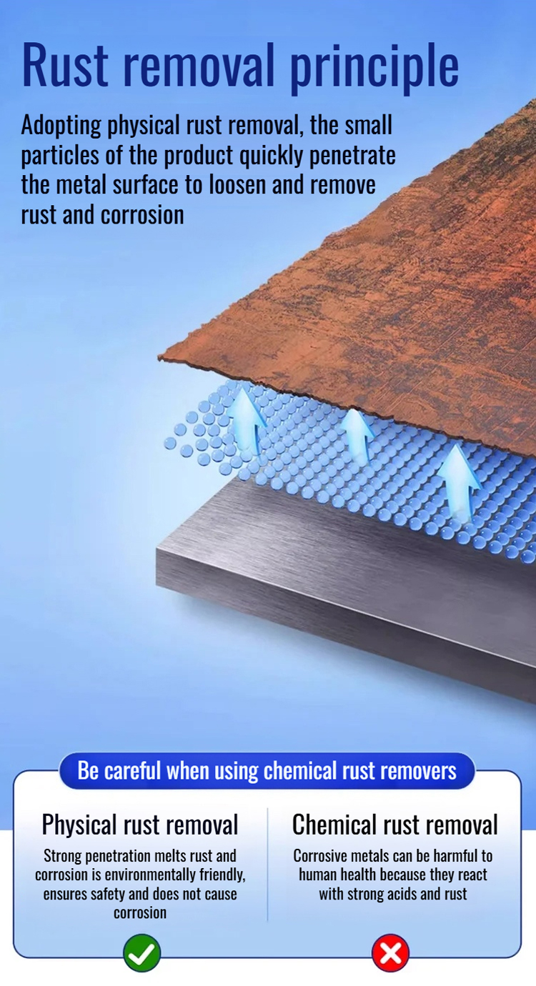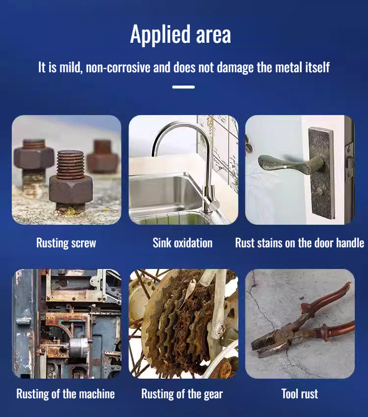 🔧 High-Tech Rust Elimination: Nano technology precisely removes stubborn rust stains. 🛡️ Long-Lasting Protection: Nano film guards against re-corrosion for 50 years. 🚢 Professional Use: Ideal for industrial equipment, bridges, and aircraft carrier maintenance. 🪙 Treasure Protector: Restores original shine to antiques and car parts. 🌿 Eco-Friendly and Safe: Does not damage metal surfaces, no need for heavy tools.