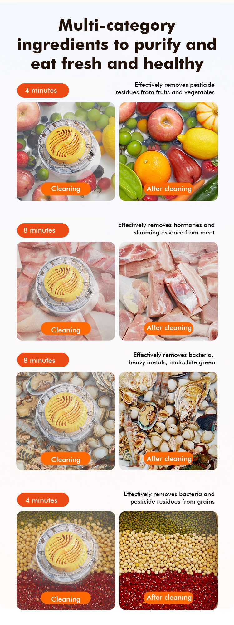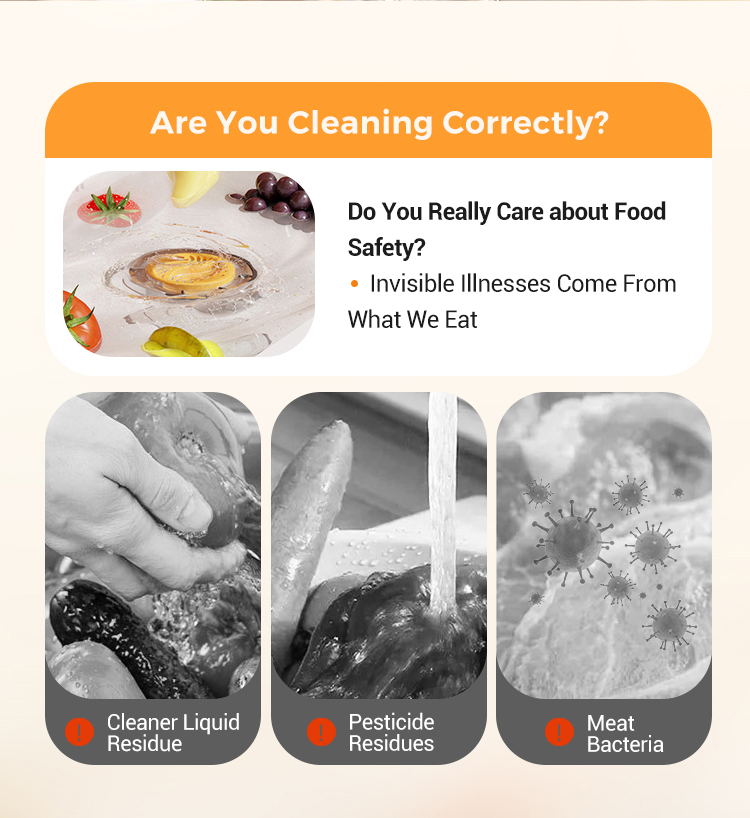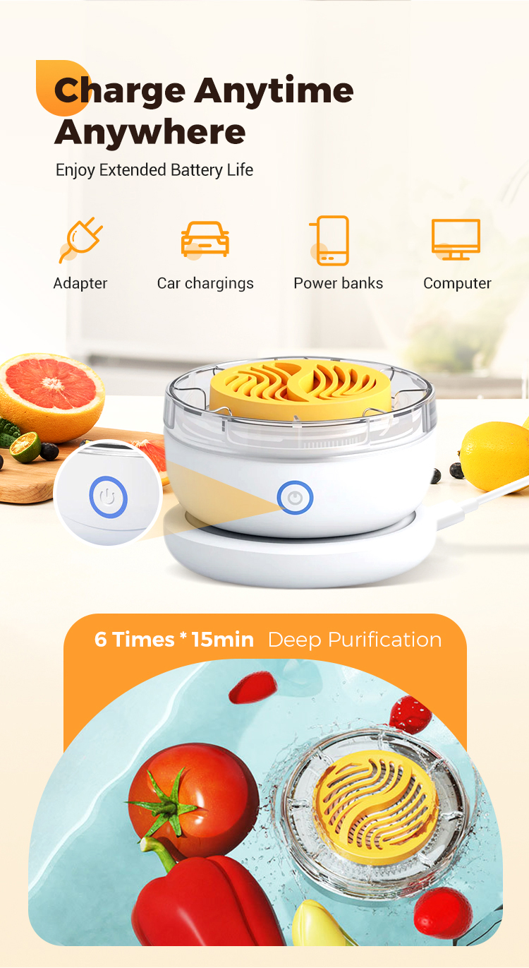 ✅Ultrasonic fruit and vegetable cleaning technology effectively removes pesticide residues and bacteria, ensuring food safety and giving you peace of mind. ✅One-button start, vortex cleaning, simple and convenient operation, saving time and effort.