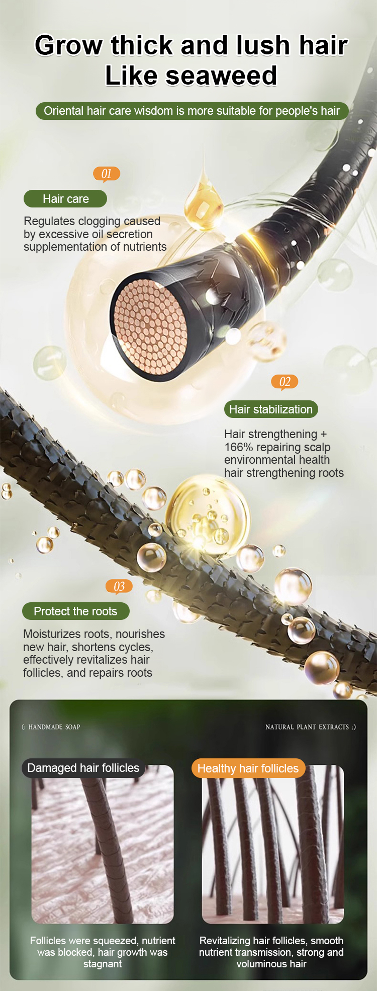 💆Natural Usma grass extract. 0 silicone oil. Activate follicles in 1 min. 24h oil control. Hair too thick to hold.